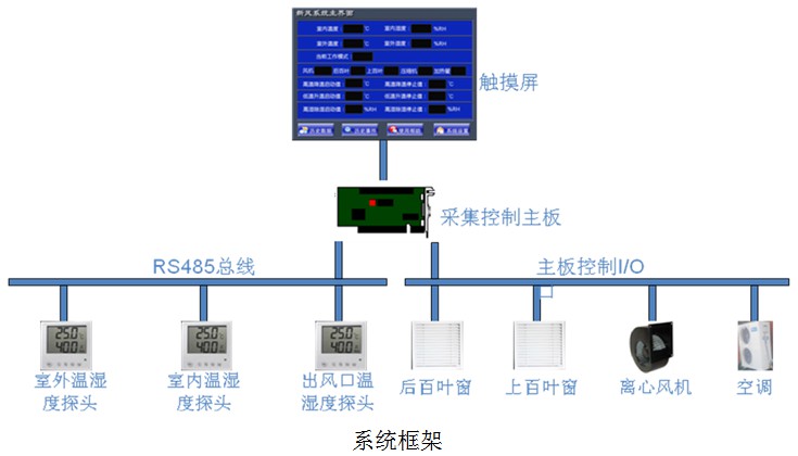 當(dāng)室外溫度低于室內(nèi)設(shè)定值,控制器開啟新風(fēng)機引入室外新風(fēng),同時關(guān)閉室內(nèi)空調(diào)達到節(jié)能效果。